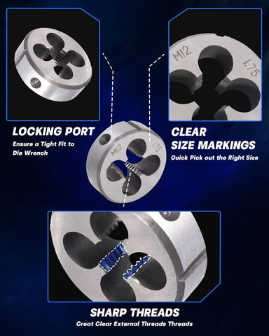 • Excellent Cutting Performance - Cut and repair external and internal threads that can help you deal with damaged nuts, bolts and threads. When replacement bolts are hard to find, you can use this tap die to repair defects on threads.