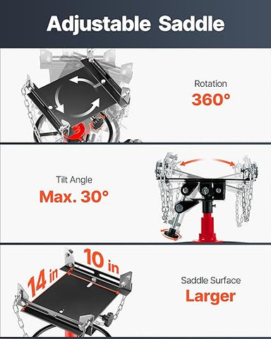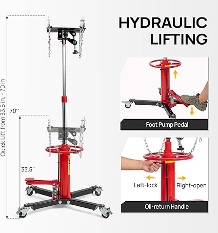 • 33-1/2" -71" Lifting Range: Enhanced hydraulic pressure for an extended lifting range, the pedestal transmission jack with a 33-1/2 inch to 71 inch lift range, our jack can lift your car to any suitable height. Comes with a foot-operated pedal, so it's easier to rise, and free up your hands.